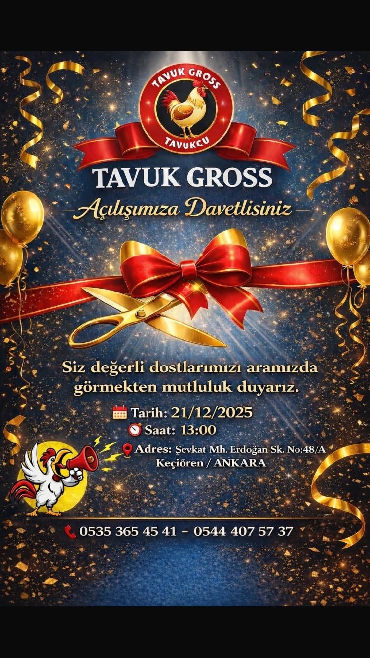 Federasyon üyemiz Saraycık Köyü eski Dernek Başkanı Hamza KARAÇAYIR'ın Keçiören Mecidiye Erdoğan Sokak 48/A Adresinde açmış olduğu TAVUK GROSS İsimli işyerinin açılışına yönetim olarak katılım sağladık.